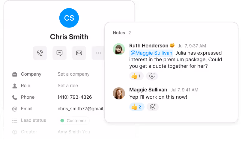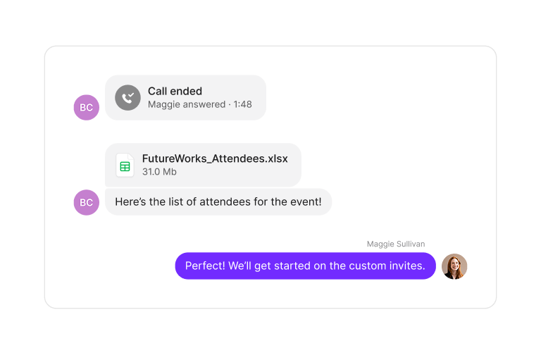 Quo lets you call and message customers, and shows you every interaction your team has had with those customers in a single view. No need to dig around. You can find it all in one place.