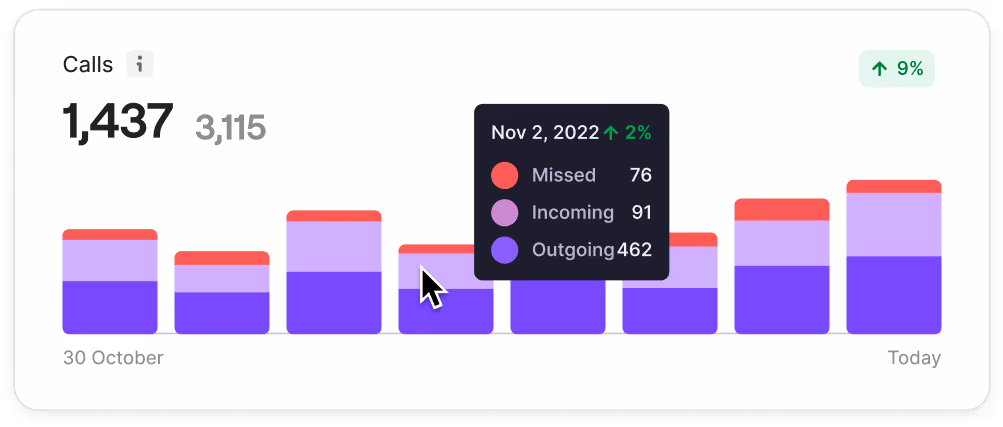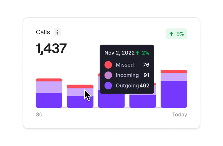 Easily see how calls are going across teammates, numbers, and call types. Identify trouble spots early, keeping your business humming as your team scales.