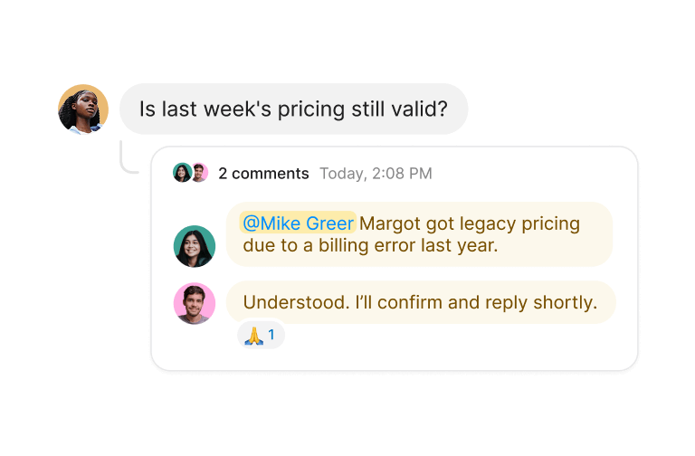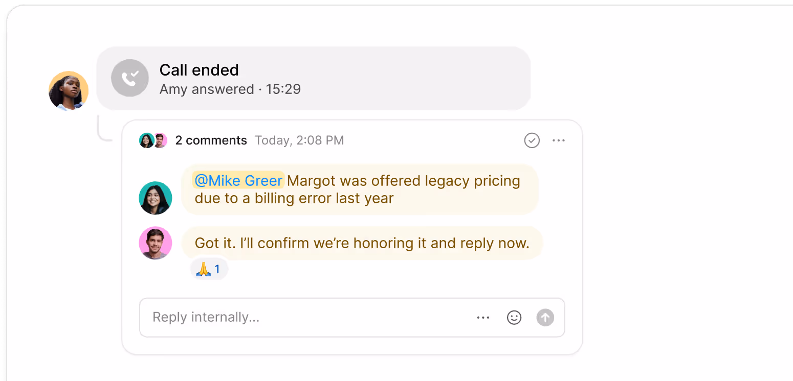 With Quo, your team can see who’s working on what, collaborate behind the scenes, and step in for each other when needed. Full context means less confusion and better responses.