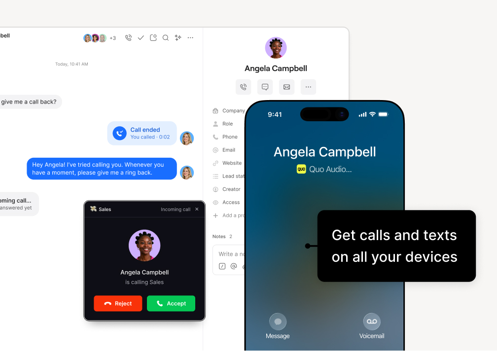 Calls, texts, voicemails, recordings — all in one place. See the full history with each customer, so your team always has the full context.