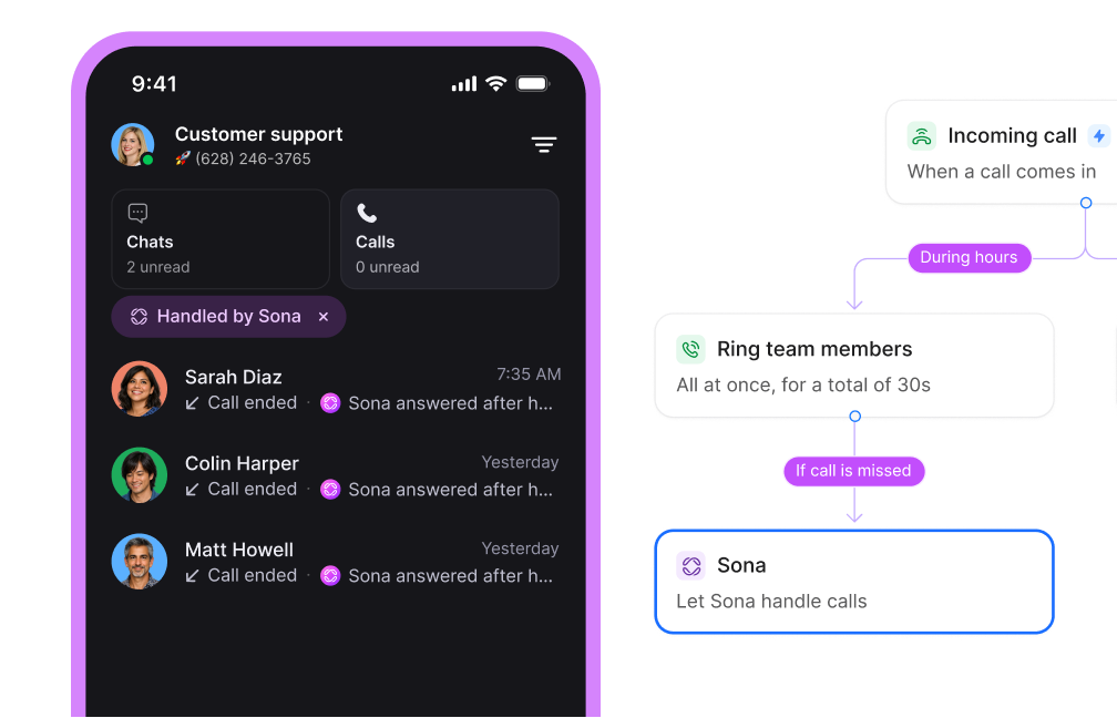 Keep your team aligned with shared numbers, inboxes, and contacts — and automatically route every caller to the right person.