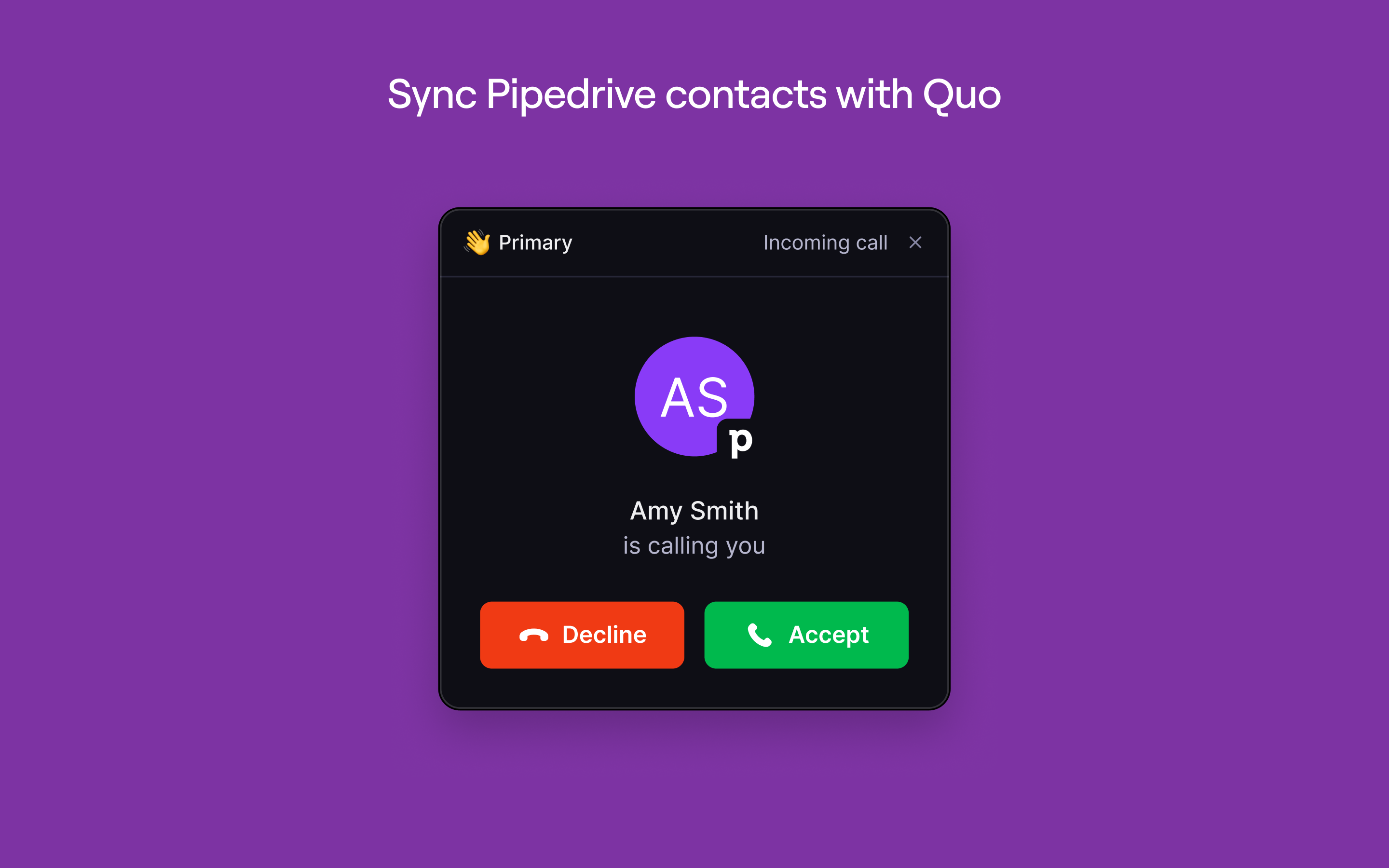 With a one-way sync from Pipedrive to Quo, your phone system stays consistently up to date, eliminating duplicate records and ensuring your contact data is always accurate.