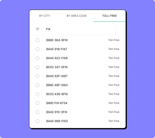 Build credibility in local regions by choosing phone numbers with recognizable area codes. Pick numbers that match your target cities or states and add them in your Quo account instantly. If you serve multiple regions, a toll-free number is a good option to provide dedicated customer support. Plus, you can stand out from the competition by adding a vanity number that customers will remember.
