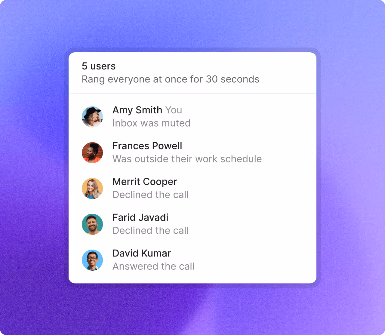 Quo has transformed how our team collaborates, with intuitive features that make it incredibly easy to transfer calls, monitor teammate activity, and add detailed notes to every interaction. We can effortlessly scale by adding new numbers as we expand into different territories.