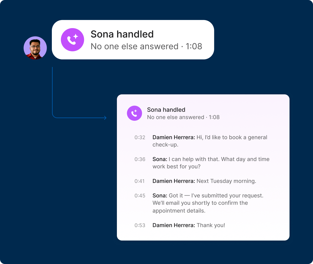 Turn voicemails and missed calls into clear, actionable summaries so your team can prioritize who to call back first.