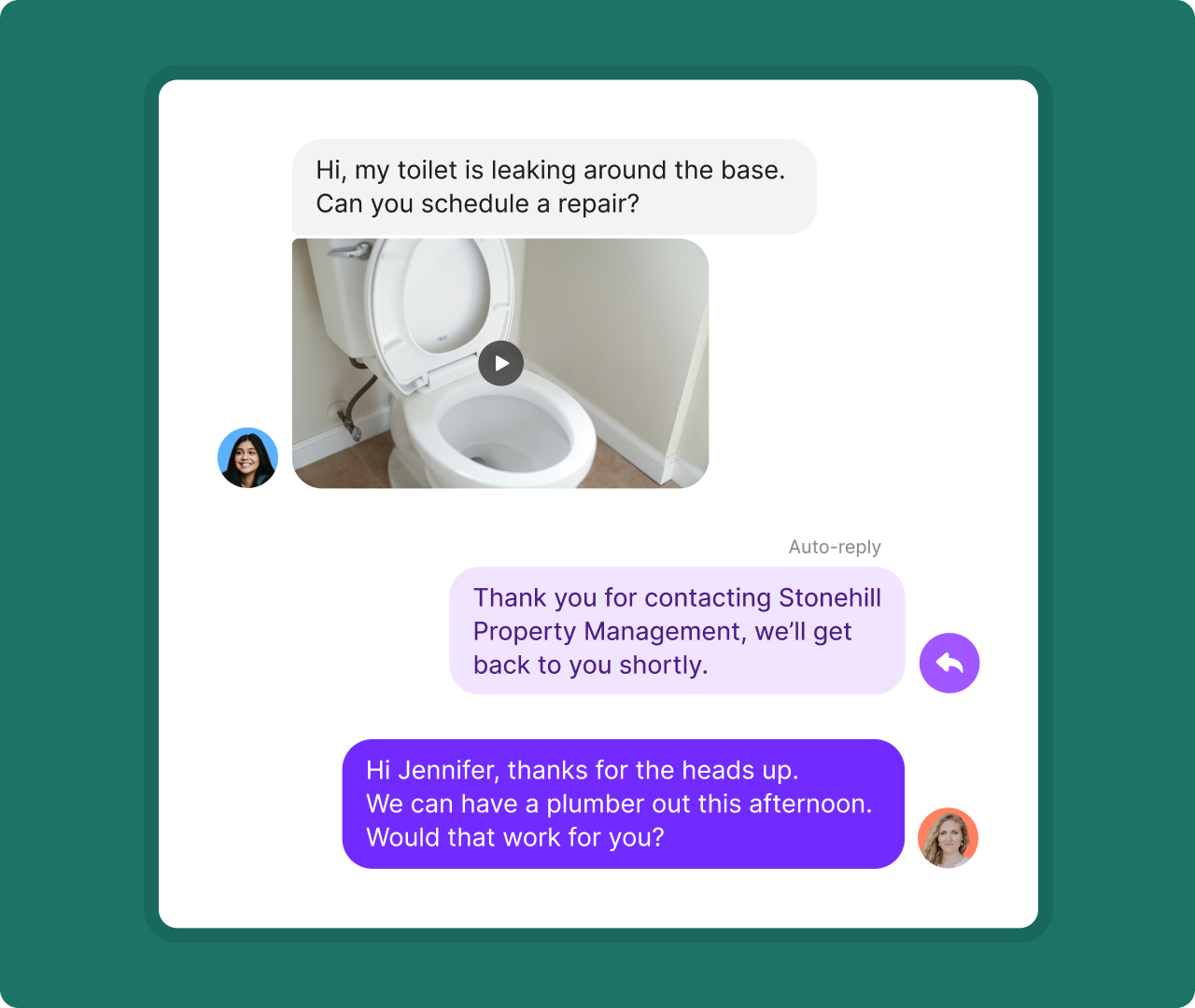Automatically reply to tenants with custom messages so they know their request was received.