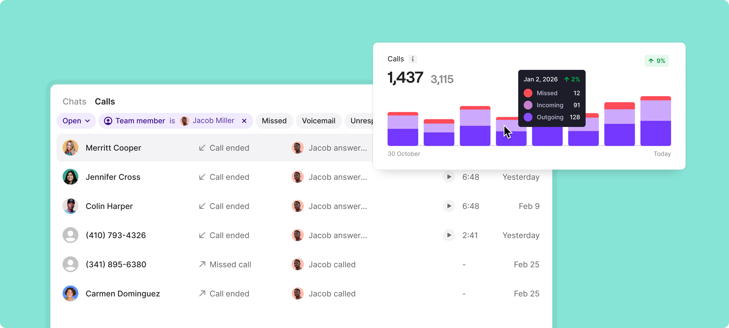 One shared inbox to track missed calls, identify coverage gaps, and review call transcripts and summaries.