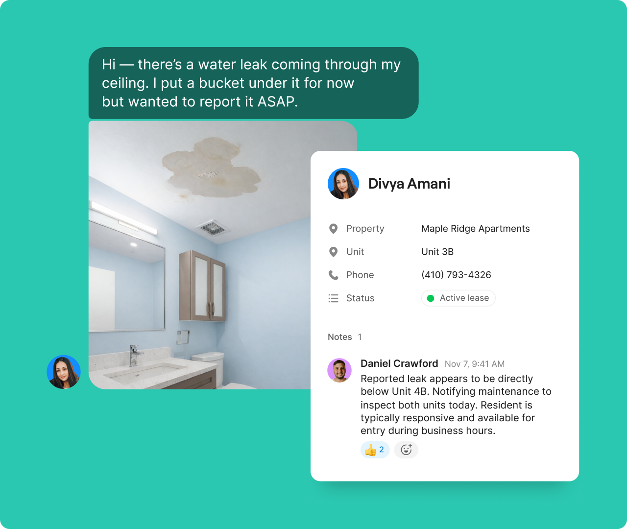 Coordinate handoffs and approvals with shared, private notes so your tenants never have to repeat themselves again.